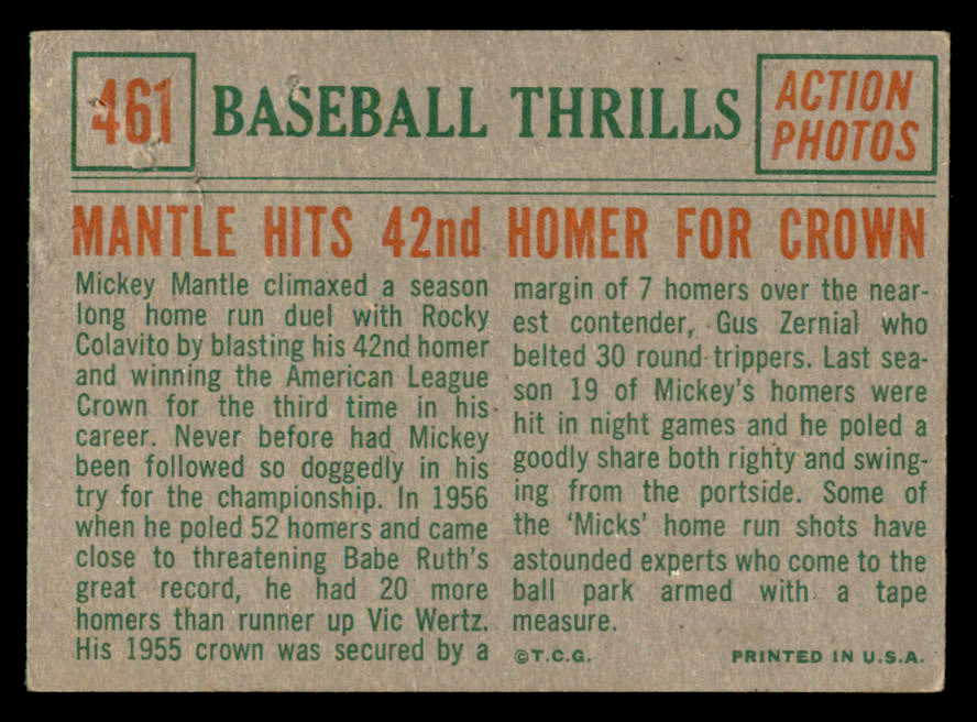 1959 Topps Baseball #461 Mickey Mantle IA Yankees FR-GD 540182