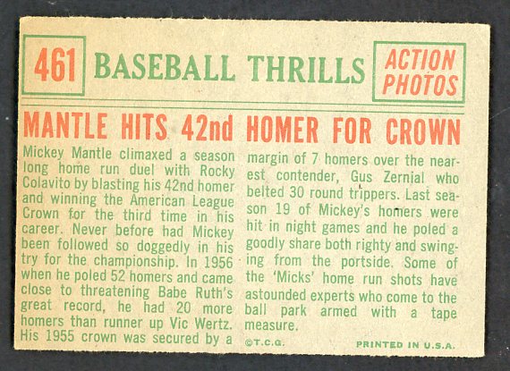 1959 Topps Baseball #461 Mickey Mantle IA Yankees VG-EX 538807