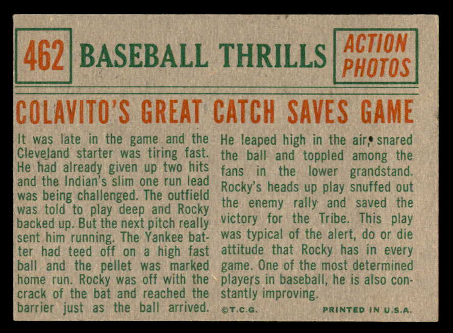 1959 Topps Baseball #462 Rocky Colavito IA Indians EX-MT 540159