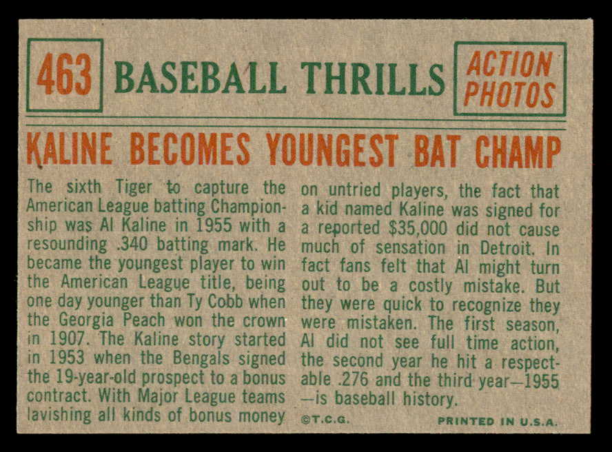 1959 Topps Baseball #463 Al Kaline IA Tigers EX-MT 538848
