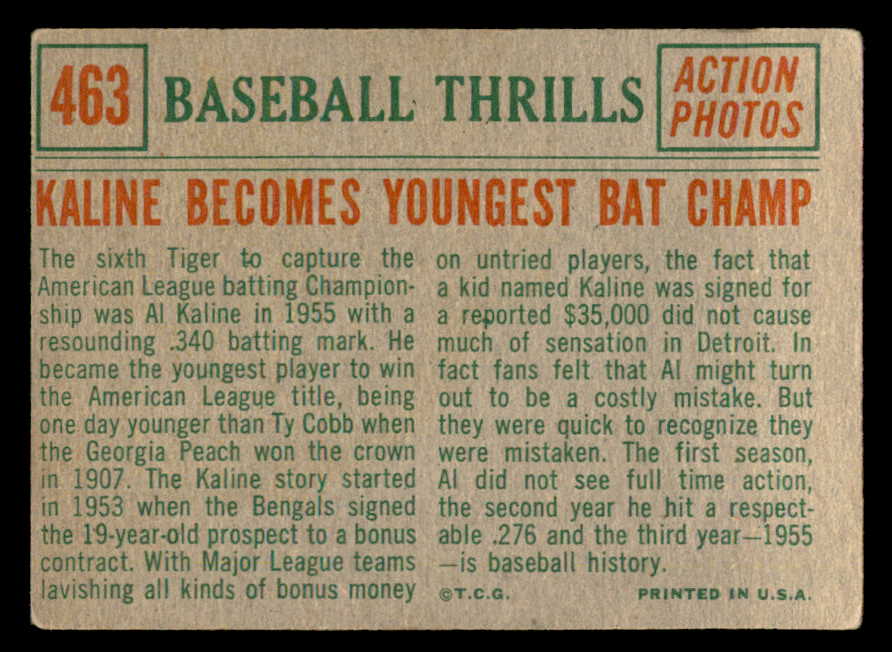 1959 Topps Baseball #463 Al Kaline IA Tigers VG 540169