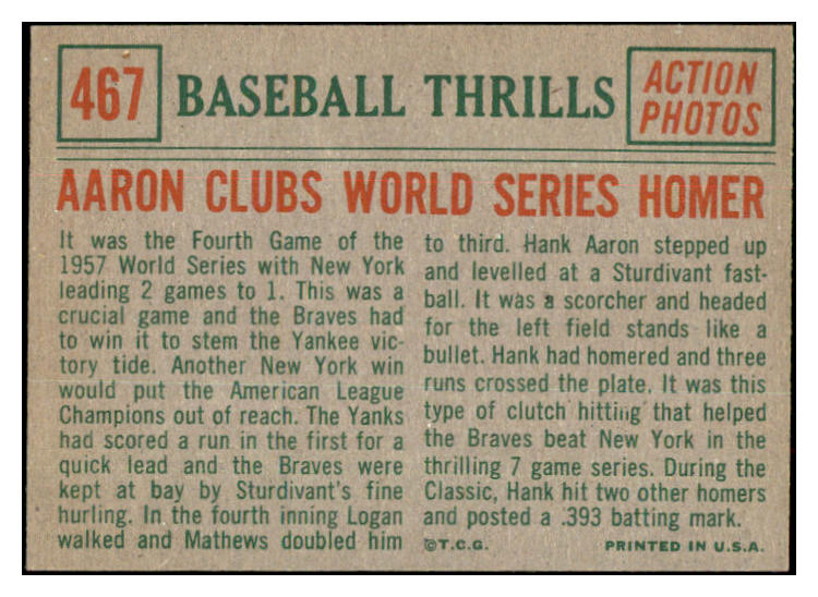 1959 Topps Baseball #467 Hank Aaron IA Braves EX-MT 532172