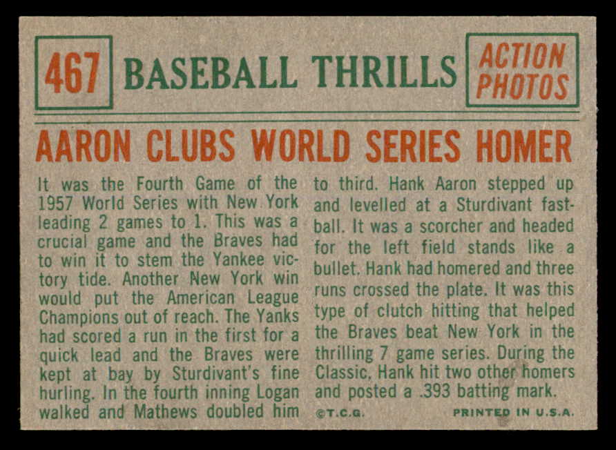 1959 Topps Baseball #467 Hank Aaron IA Braves NR-MT 539153