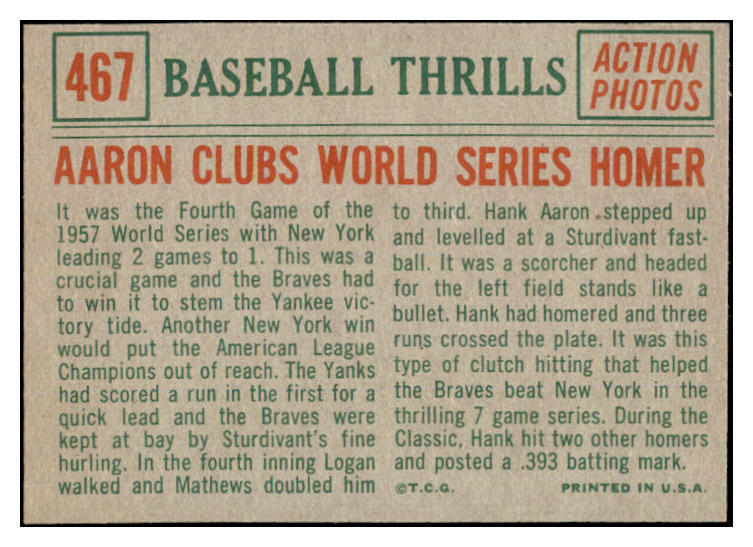 1959 Topps Baseball #467 Hank Aaron IA Braves VG-EX 527397