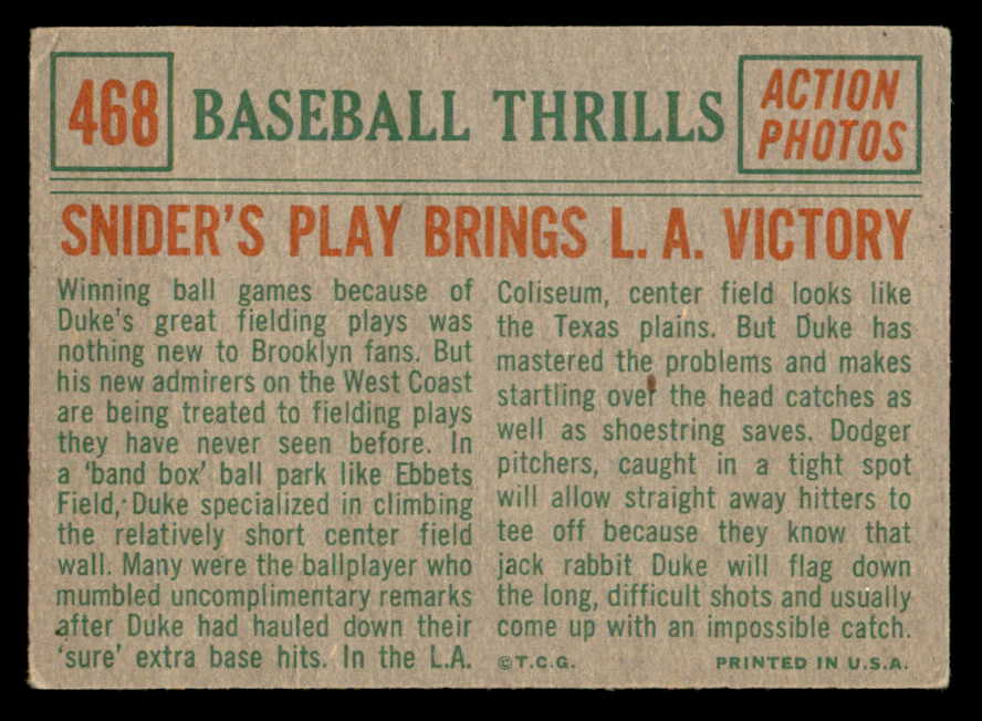 1959 Topps Baseball #468 Duke Snider IA Dodgers VG-EX 538809