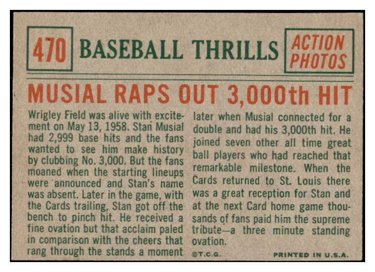 1959 Topps Baseball #470 Stan Musial IA Cardinals EX 530625