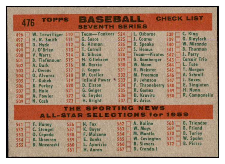 1959 Topps Baseball #476 Cleveland Indians Team EX-MT 524338