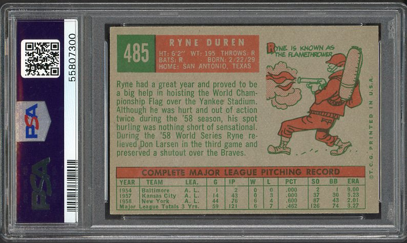 1959 Topps Baseball #485 Ryne Duren Yankees PSA 7 NM 538248
