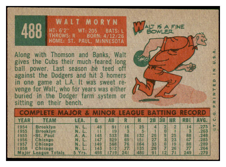 1959 Topps Baseball #488 Walt Moryn Cubs NR-MT 524153