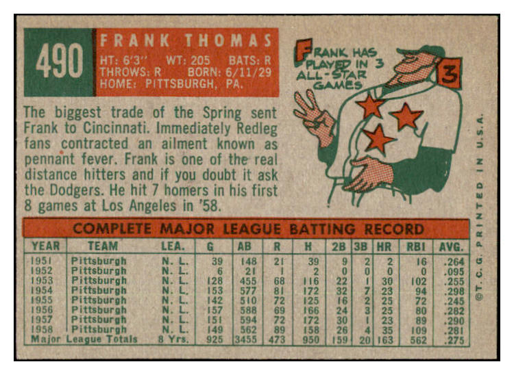 1959 Topps Baseball #490 Frank Thomas Reds NR-MT 524155