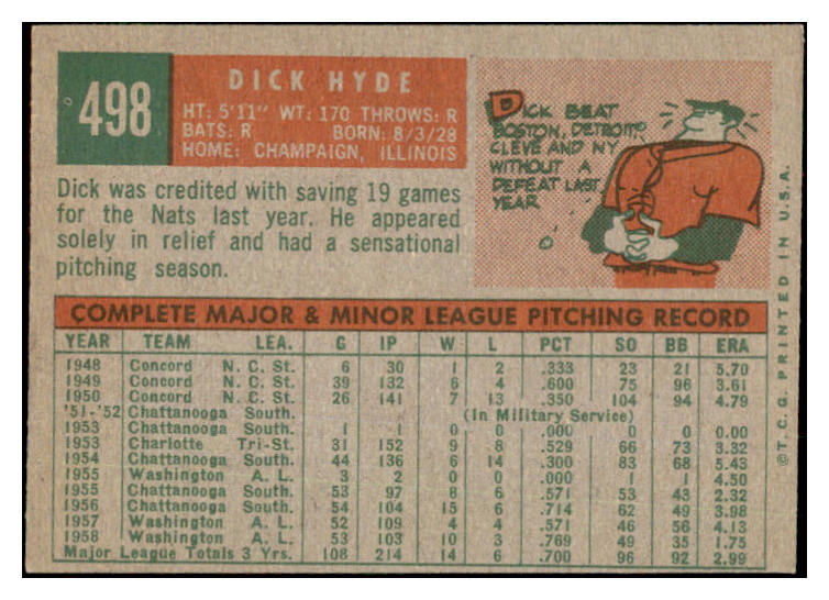 1959 Topps Baseball #498 Dick Hyde Senators NR-MT 524161