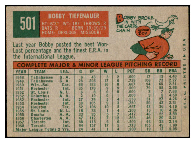1959 Topps Baseball #501 Bobby Tiefenauer Indians NR-MT 524164