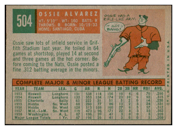 1959 Topps Baseball #504 Ossie Alvarez Tigers EX-MT 536285