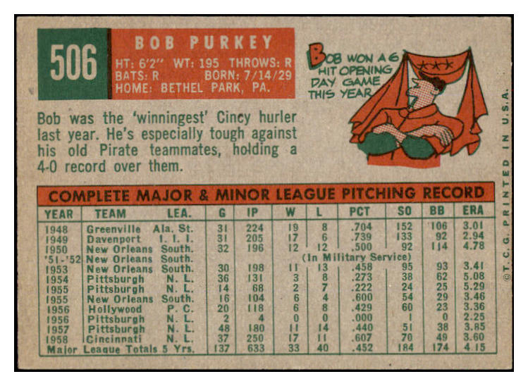1959 Topps Baseball #506 Bob Purkey Reds EX-MT 524267