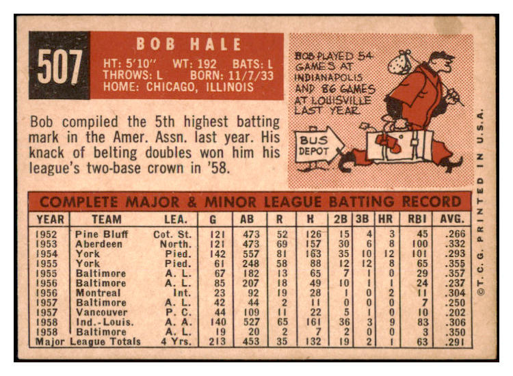 1959 Topps Baseball #507 Bob Hale Orioles EX-MT 525379