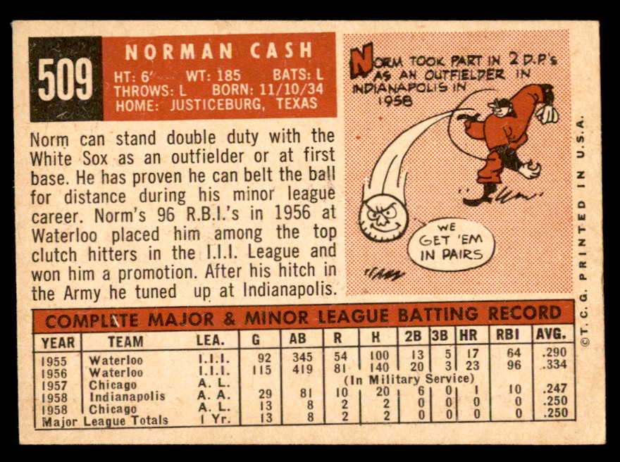 1959 Topps Baseball #509 Norm Cash White Sox EX+/EX-MT 540172