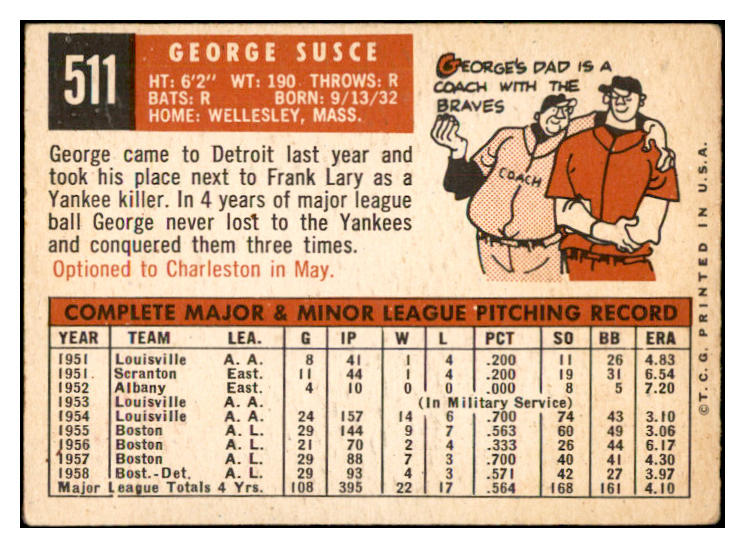 1959 Topps Baseball #511 George Susce Tigers VG-EX 532418