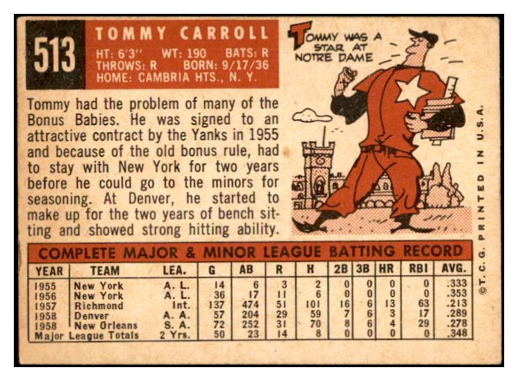 1959 Topps Baseball #513 Tommy Carroll A's VG-EX 532419