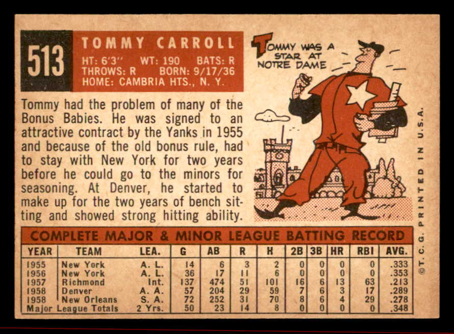 1959 Topps Baseball #513 Tommy Carroll A's VG-EX/EX 542660