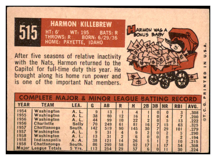 1959 Topps Baseball #515 Harmon Killebrew Senators VG 527241