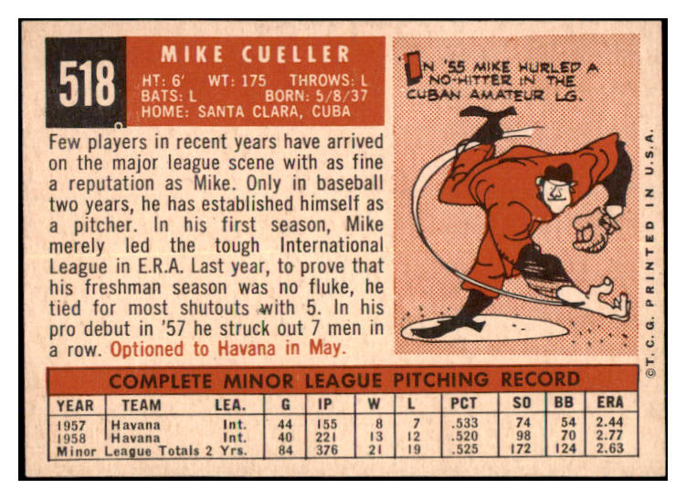 1959 Topps Baseball #518 Mike Cuellar Reds EX-MT 527471