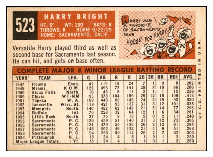 1959 Topps Baseball #523 Harry Bright Pirates EX-MT 536387