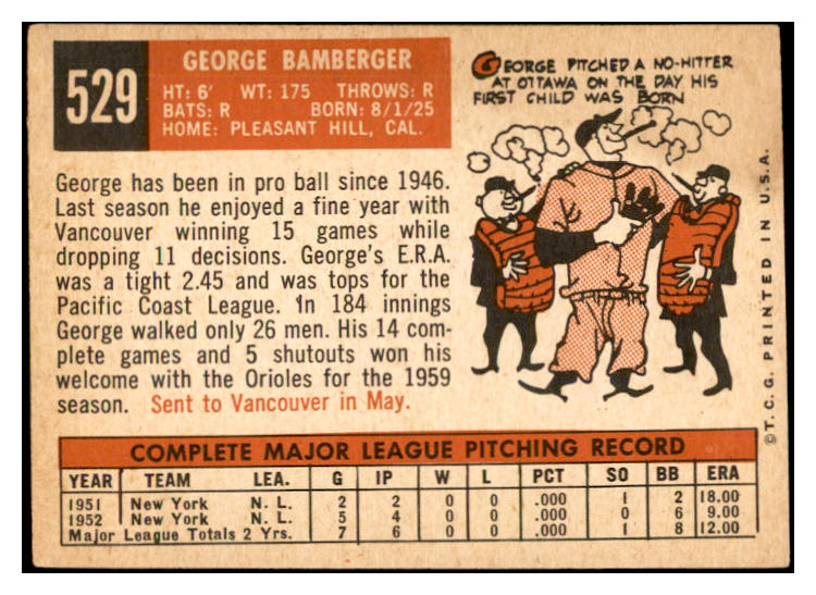 1959 Topps Baseball #529 George Bamberger Orioles VG-EX 532431