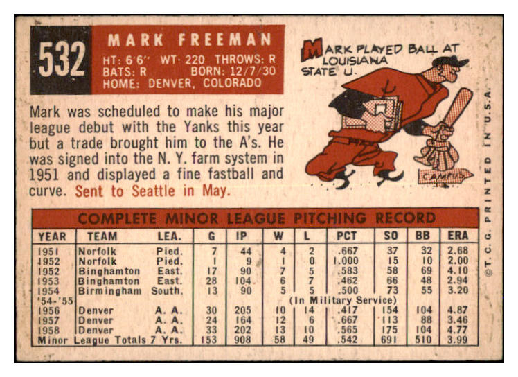 1959 Topps Baseball #532 Mark Freeman A's EX-MT 527484