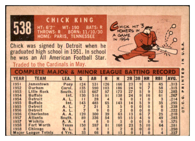 1959 Topps Baseball #538 Chick King Cubs EX 527478