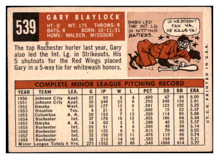 1959 Topps Baseball #539 Gary Blaylock Cardinals EX-MT 527490