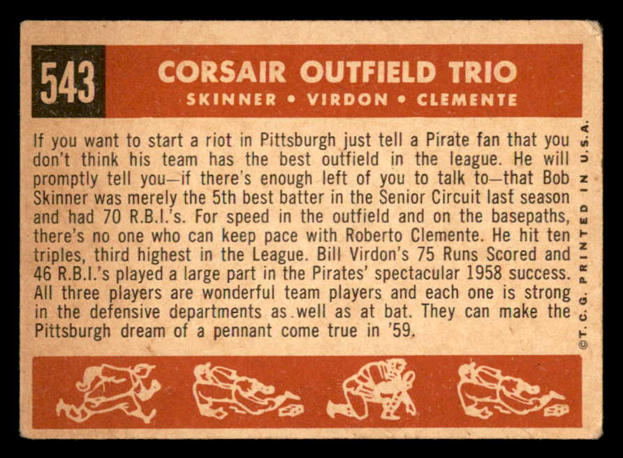 1959 Topps Baseball #543 Roberto Clemente Bill Virdon VG 540189
