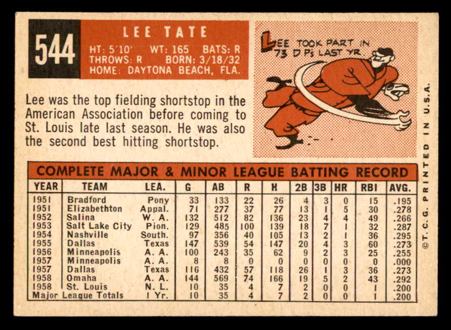 1959 Topps Baseball #544 Lee Tate Cardinals EX-MT 547042