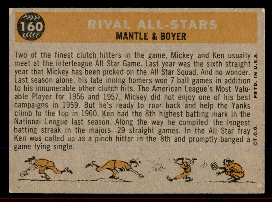 1960 Topps Baseball #160 Mickey Mantle Ken Boyer EX+/EX-MT 545526