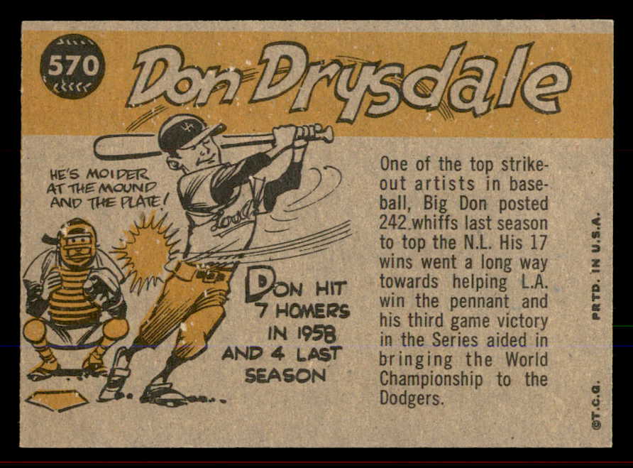 1960 Topps Baseball #570 Don Drysdale A.S. Dodgers EX 545510
