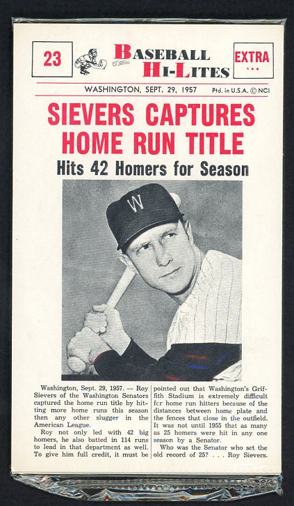1960 Nu Card Hi Lites Unopened Cello Pack Roy Sievers Top EX-MT 513750
