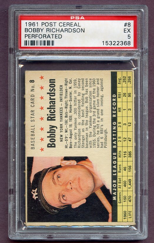 1961 Post Baseball #008 Bobby Richardson Yankees PSA 5 EX 474937