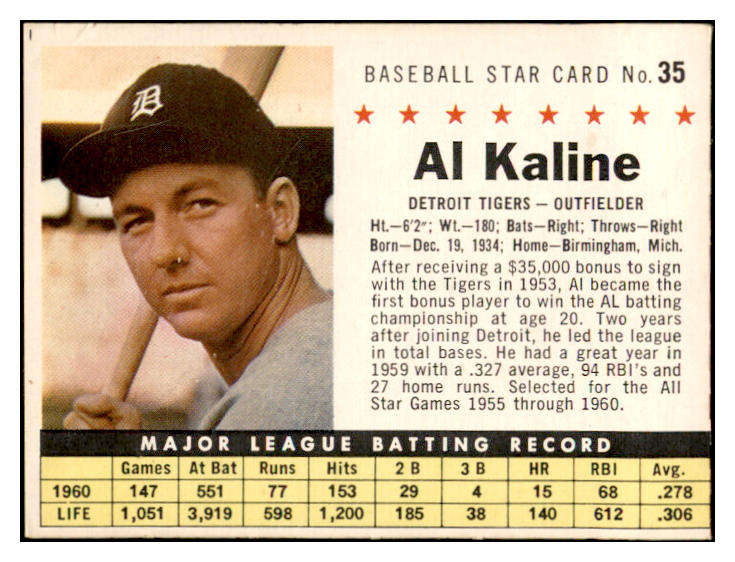 1961 Post Baseball #035 Al Kaline Tigers VG-EX 536467