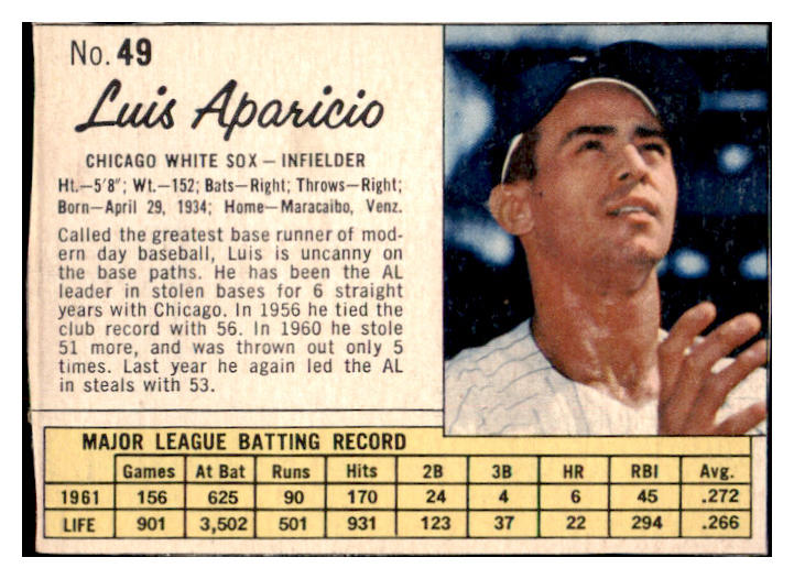 1962 Jello #049 Luis Aparicio White Sox VG-EX 513634