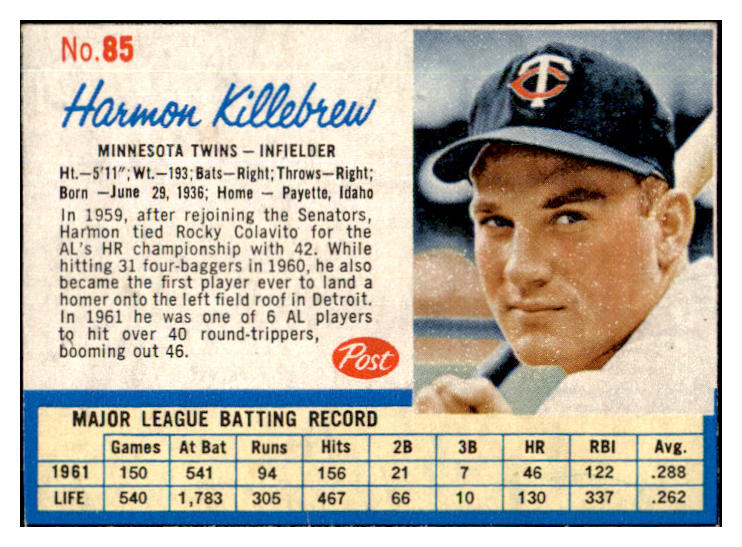 1962 Post Baseball #085 Harmon Killebrew Twins EX-MT 445522