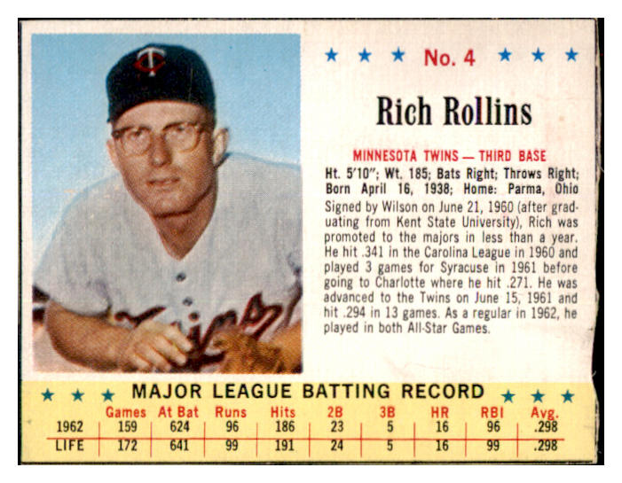 1963 Jello #004 Rich Rollins Twins VG 516339