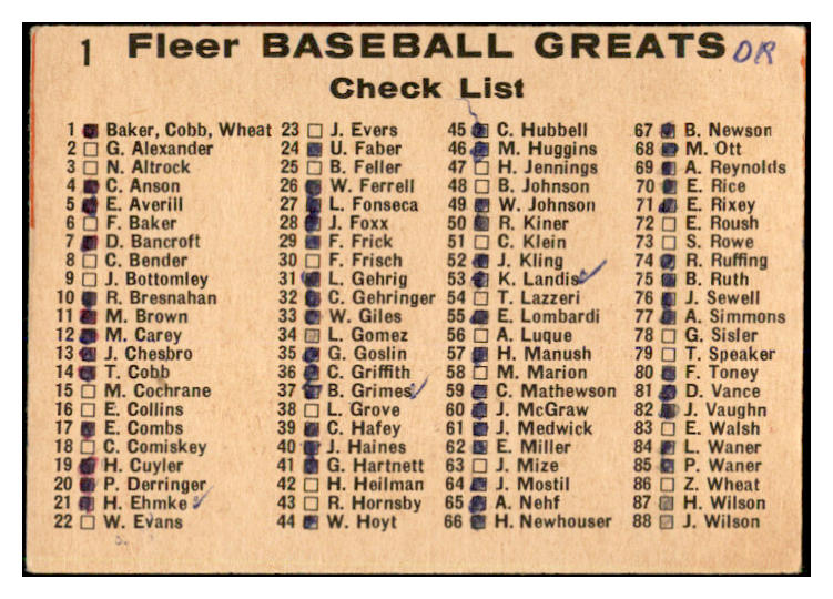 1961 Fleer Baseball #001 Ty Cobb Frank Baker Zach Wheat Good marked 537399