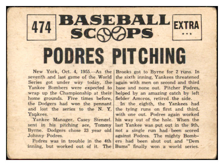 1961 Nu Card Scoops #474 Johnny Podres Dodgers GD-VG 534836