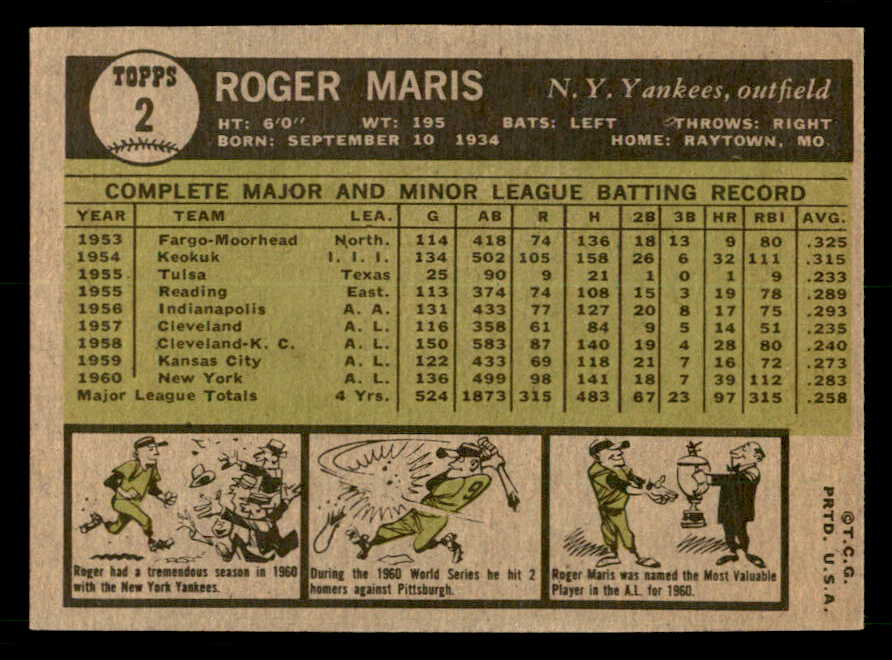 1961 Topps Baseball #002 Roger Maris Yankees EX-MT 539611