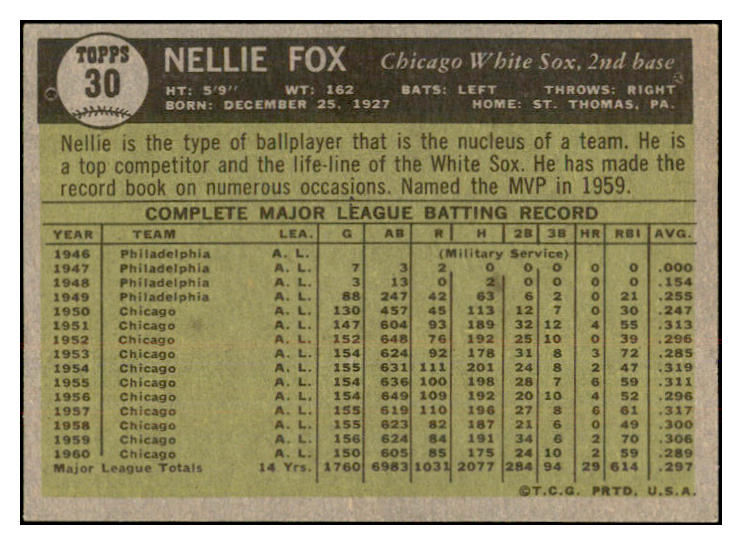 1961 Topps Baseball #030 Nellie Fox White Sox EX-MT 534313