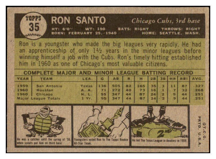 1961 Topps Baseball #035 Ron Santo Cubs EX-MT 529126