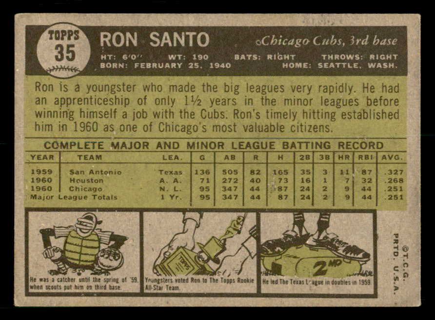 1961 Topps Baseball #035 Ron Santo Cubs EX-MT 539582