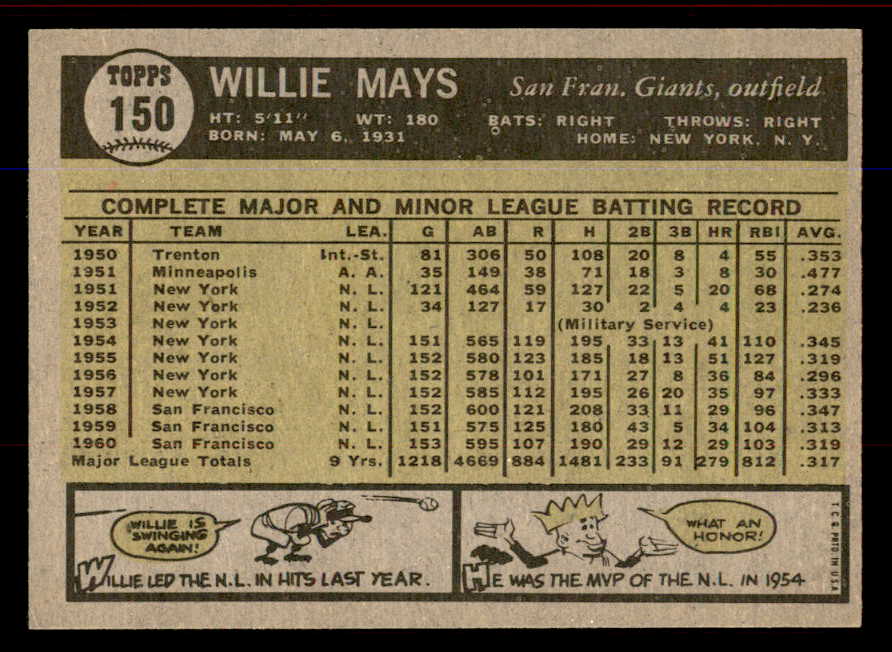 1961 Topps Baseball #150 Willie Mays Giants EX-MT/NR-MT 545490