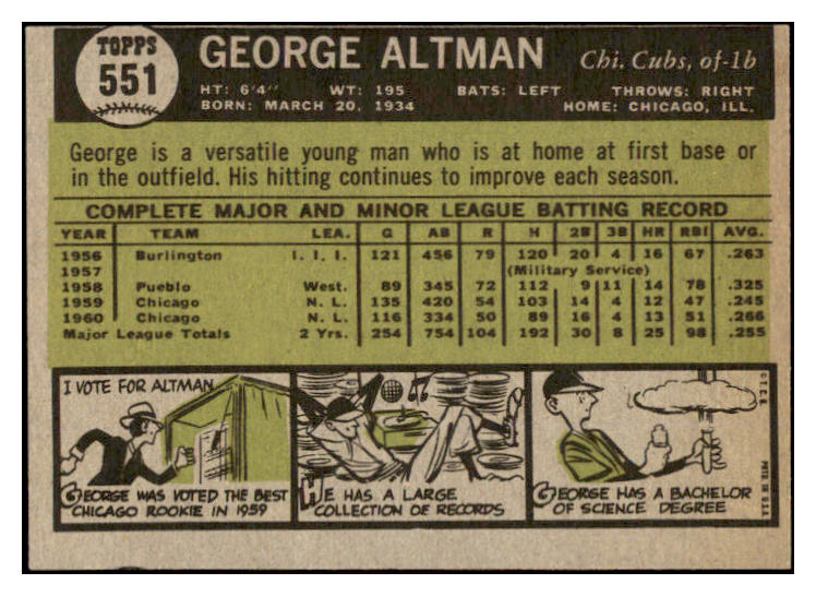 1961 Topps Baseball #551 George Altman Cubs EX-MT 525519