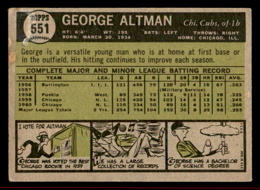 1961 Topps Baseball #551 George Altman Cubs VG-EX/EX 542652