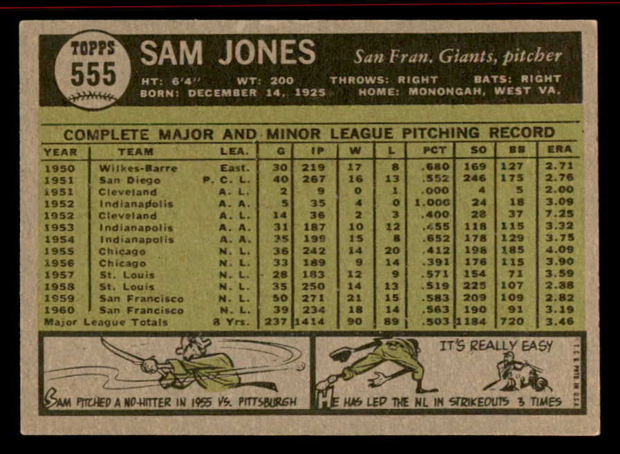 1961 Topps Baseball #555 Sam Jones Giants NR-MT 542777